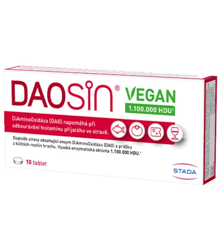 Daosin Vegan je doplněk stravy s obsahem enzymu DiAminoOxidáza (DAO) z klíčních rostlin hrachu. DiAminoOxidáza (DAO) napomáhá při odbourávání histaminu přijatého ve stravě.