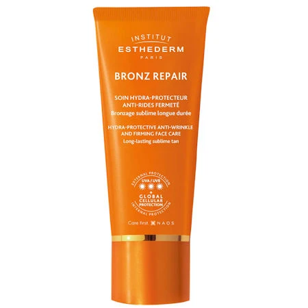 Institut Esthederm Bronz Repair je opalovací krém na obličej a dekolt Institut Esthederm Bronz Repair se silnou ochranou proti UV záření je nejen ochranným opalovacím krémem, ale také plnohodnotnou protivráskovou péčí se silným omlazujícím účinkem. Tento jemný krém chrání, stimuluje a optimalizuje opálení, zabraňuje stárnutí, zjemňuje a vyhlazuje vrásky a zpevňuje pokožku.