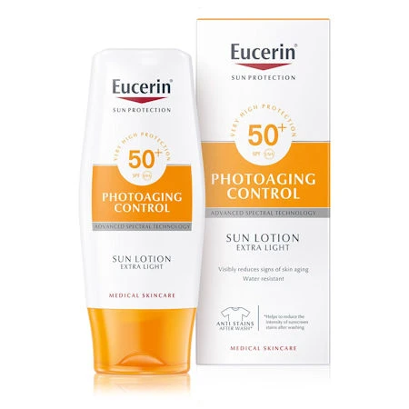 Eucerin extra lehké mléko na opalování Photoaging Control SPF 50+ je opalovací tělové mléko vhodné pro všechny typy pokožky, včetně té citlivé.