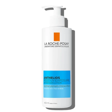 Složení mléka po opalování Anthelios po vystavení UV záření obsahuje panthenol, glycerin a termální vodu La Roche-Posay, které zklidňují pocity přehřátí, obnovují suchou pokožku vystavenou slunci a posilují ochrannou bariéru pokožky.