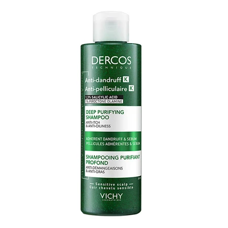 Šampon Vichy Dercos K díky jemné exfoliační formuli odstraňuje z vlasové pokožky lupy, nadměrné množství kožního mazu a dokonce i odolná rezidua. Je hypoalergenní a byl testován na citlivé vlasové pokožce. Výborně se hodí pro každodenní použití. Složení s pH 5,5 (přirozené pH vlasové pokožky) pomáhá obnovit rovnováhu kožního mikrobiomu.