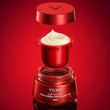 Vichy Liftactiv Collagen Specialist 16 denní krém SPF50 každé ráno naneste na suchou pleť. Jemně rozetřete, dokud se důkladně nevstřebá. Vyhněte se očnímu okolí.
